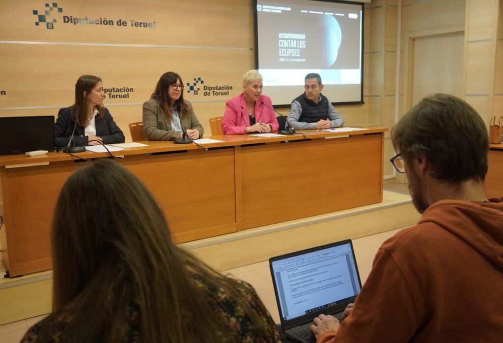 La Asociación de Periodistas de Aragón y el Centro de Estudios de Física del Cosmos de Aragón (CEFCA) han presentado este martes, 13 de enero, en la Diputación Provincial de Teruel el I Encuentro de Comunicación, Ciencia y Sociedad, una cita que se celebrará durante los días 12 y 13 de febrero y que reunirá en la capital turolense a periodistas y divulgadores científicos. Como refleja el título de esta primera edición ‘Astroperiodismo: contar los eclipses’, la cita estará centrada en el estudio, la observación y la comunicación de los eclipses, coincidiendo con el evento histórico, el eclipse solar del 12 de agosto, que convertirá a la provincia de Teruel en una de las mejores zonas del mundo para su observación.