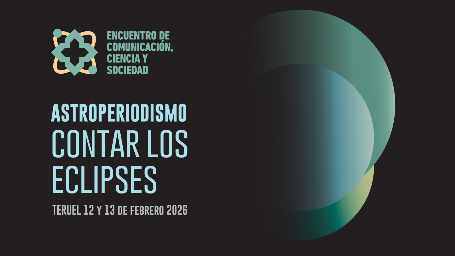 La autora de esta identidad visual corporativa es Aurora Verón, diseñadora aragonesa que también ha alumbrado el cartel de esta primera edición del Encuentro ‘Astroperiodismo: contar los eclipses’. En este caso, la obra refleja de manera artística la interposición de la Luna entre el Sol y el Planeta Tierra a través de tres esferas de diverso tamaño y un ligero destello amarillo, en referencia al sistema solar.